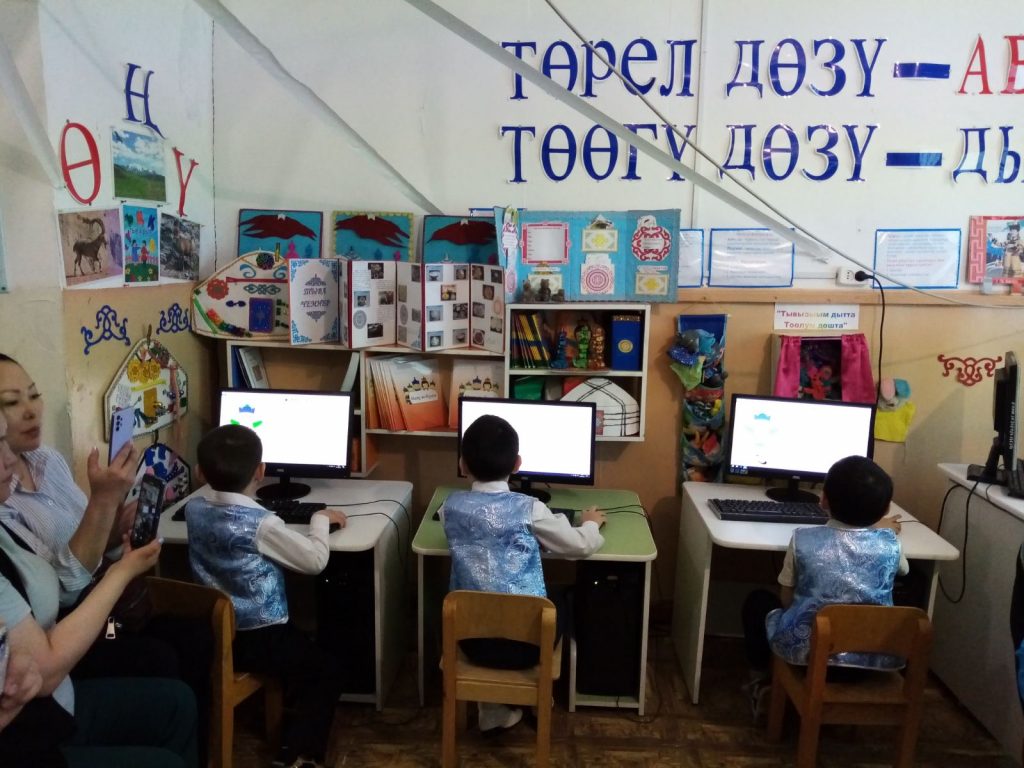 В рамках месячника по реализации ведомственного проекта «Хуреш в детские сады», в честь празднования 77 — летия Победы в Великой Отечественной войне, в нашем детском саду 19 апреля руководителем кружка по национальной борьбе «Бичии Начын» Сандык Ульяной Назын-ооловной, в компьютерном классе было проведено открытое занятие по обмену опытом для молодых воспитателей Монгун-Тайгинского кожууна на тему «Мөгениң чоргааранчыг, чараш хеви — содак — шудак». В занятии принимали участие воспитанники кружка «Бичии Начыннар».