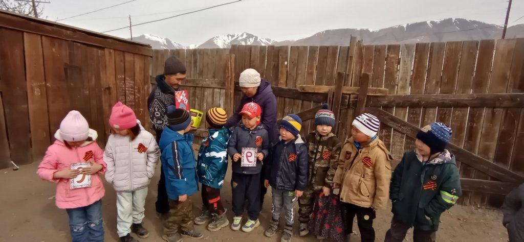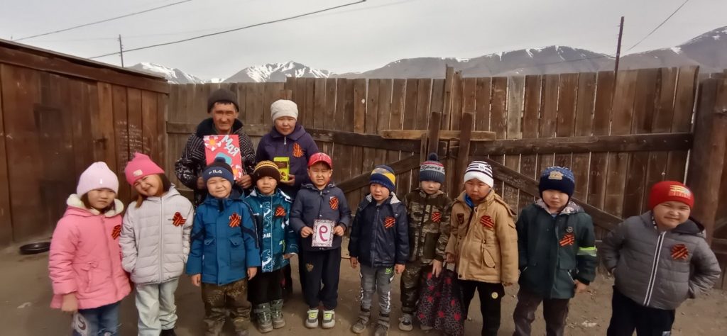 Воспитанники старше-подготовительной группы «Ромашка» — воспитатель Хертек Чинчи Михаиловна, поздравили наших уважаемых ветеранов, заведующую, ветерана труда, почетного работника общего образования РФ Ондар Валентину Алдын-ооловну и Чондан Монгун-оол Хертековича, с праздниками 1 мая — Весны и Труда и 9 мая — Днем Победы! Желаем крепкого здоровья, счастья, любви и мирного голубого неба!
