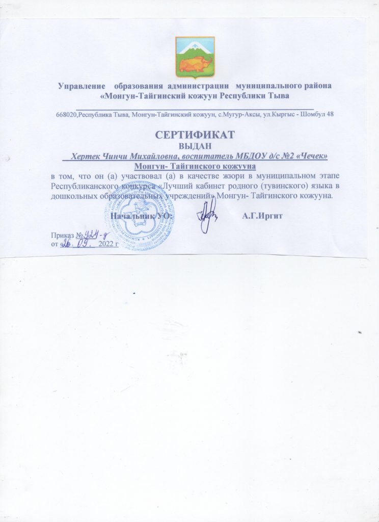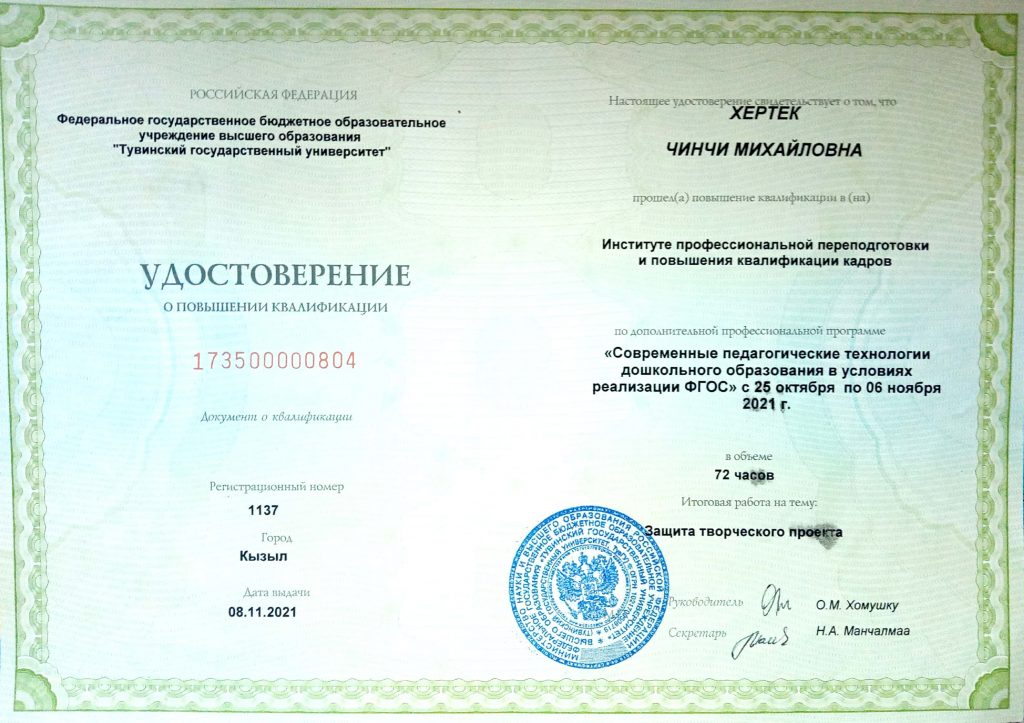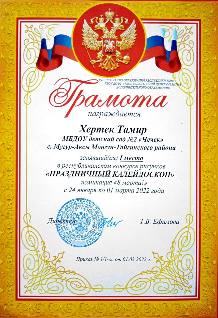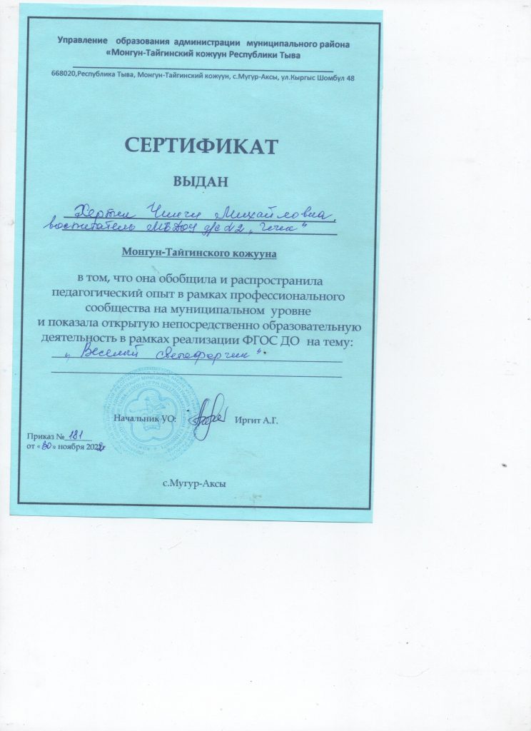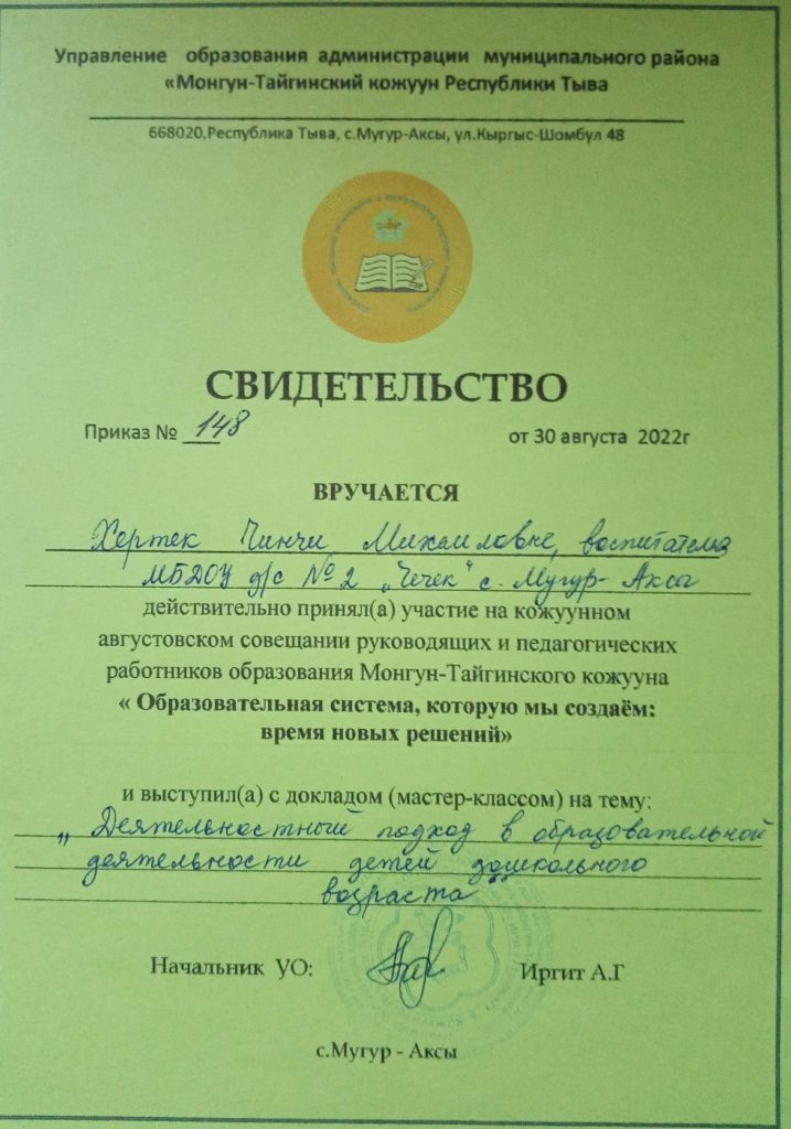 «Воспитатель года — 2023» Хертек Чинчи Михаиловна